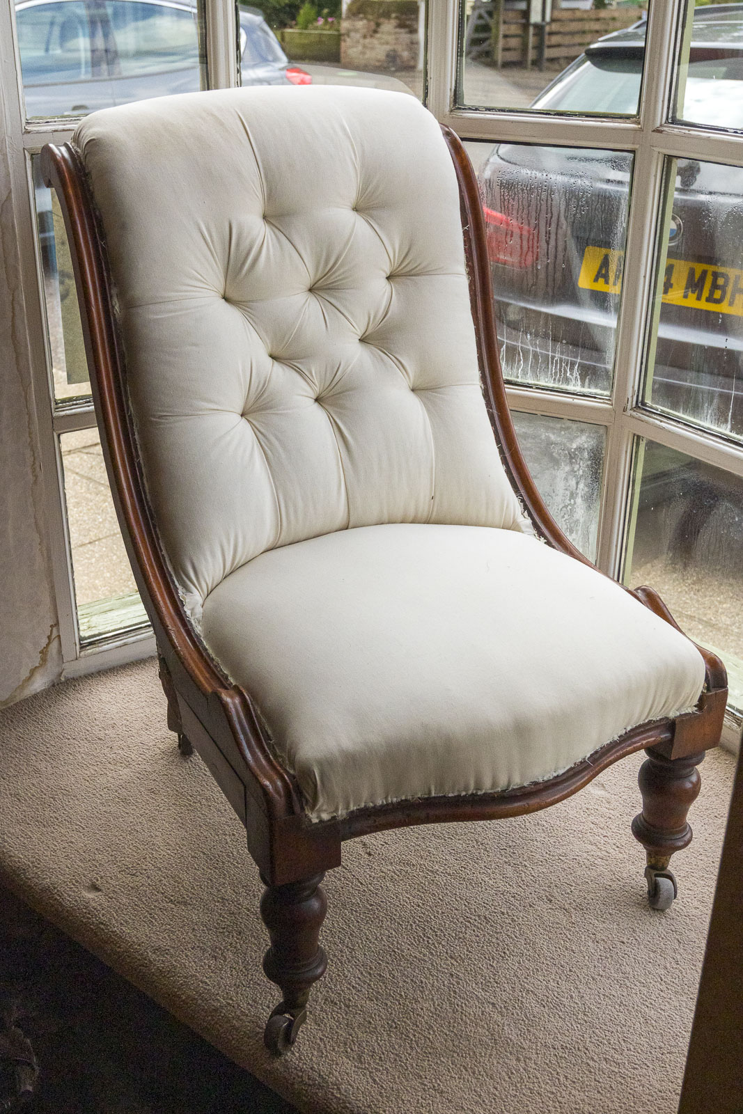 Victorian Scroll Back Easy Chair with Button Upholstery