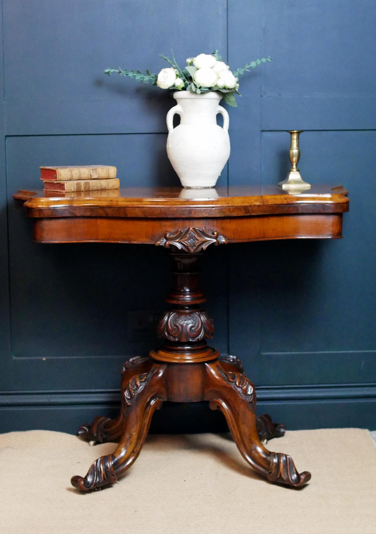 Victorian Masterpiece: Serpentine Walnut Card Table (c. 1860)