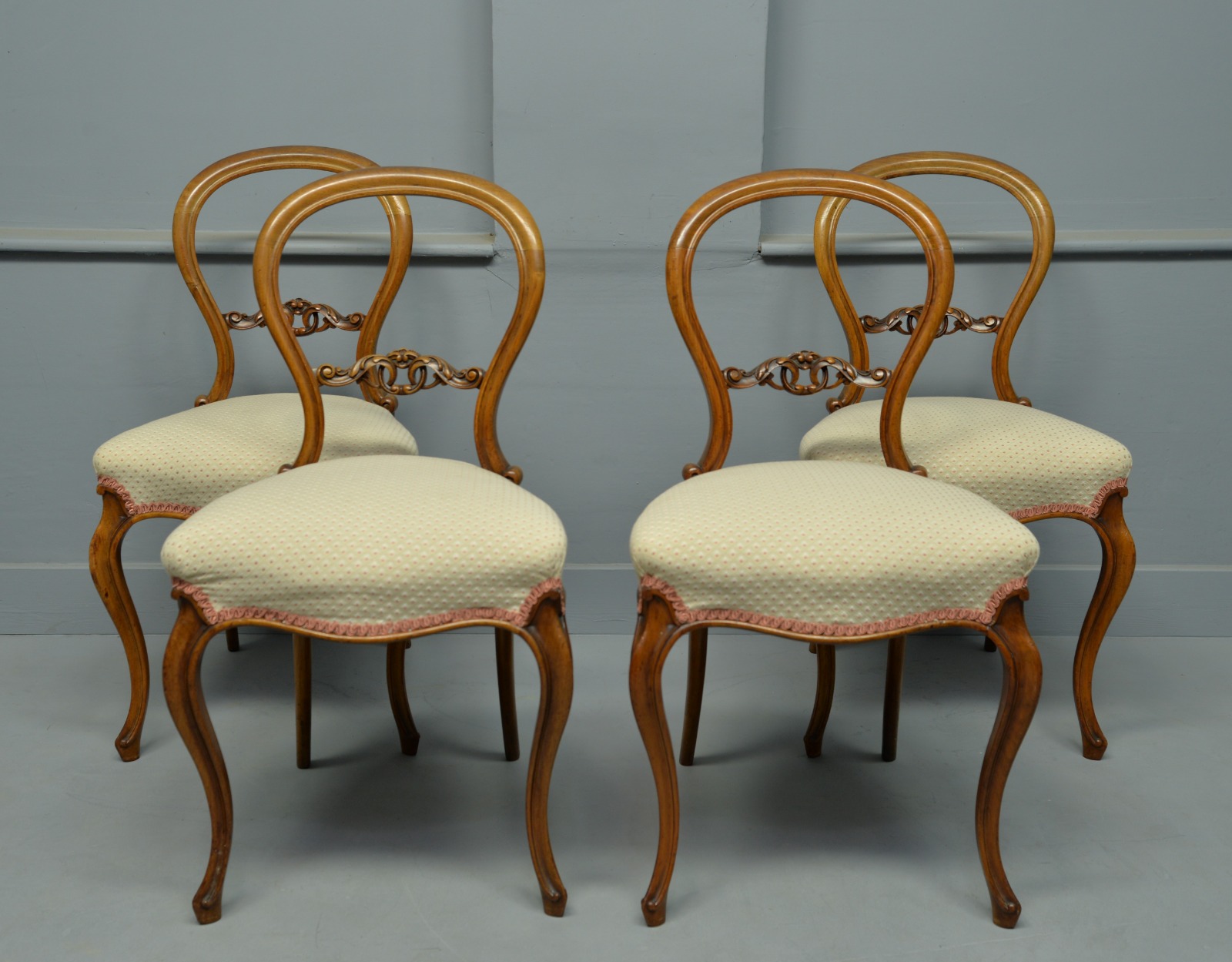 Victorian Set of Four Walnut Balloon Back Dining Chairs John Taylor & Son