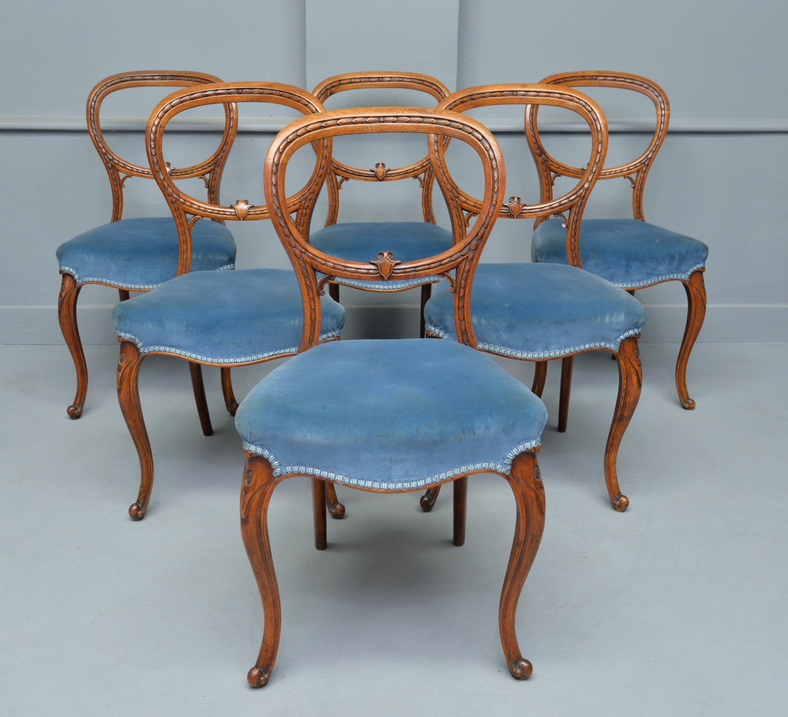 Victorian Set of Six Walnut Balloon Back Dining Chairs