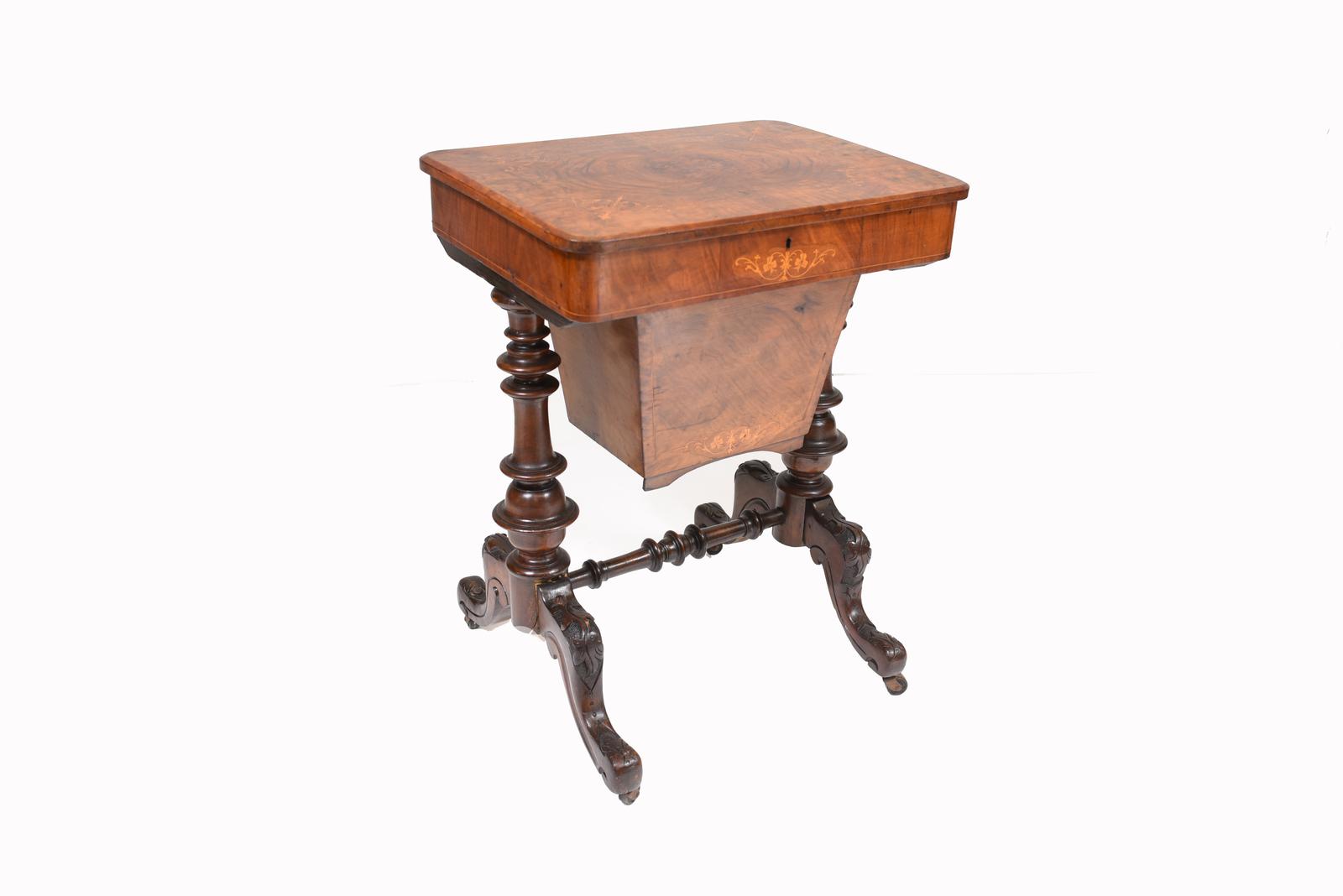 Victorian Sewing Table Antique Burr Walnut 1860 Side Tables