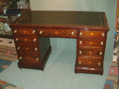 Victorian Sheraton Revival Rosewood & Inlaid Pedestal Writing Desk