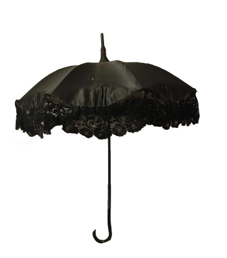 Victorian Silk Lace Black Mourning Parasol with Crook Handle