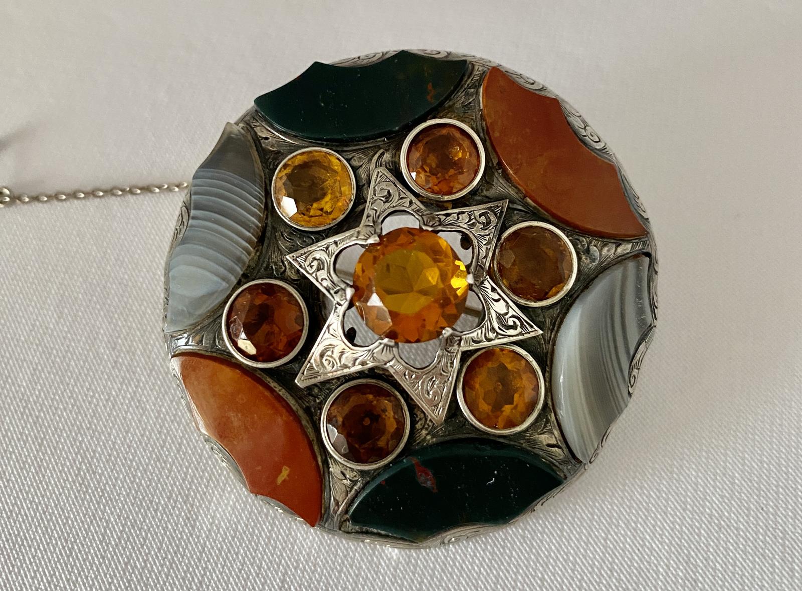 Victorian Silver, Agate & Citrine Shawl Brooch. C1880