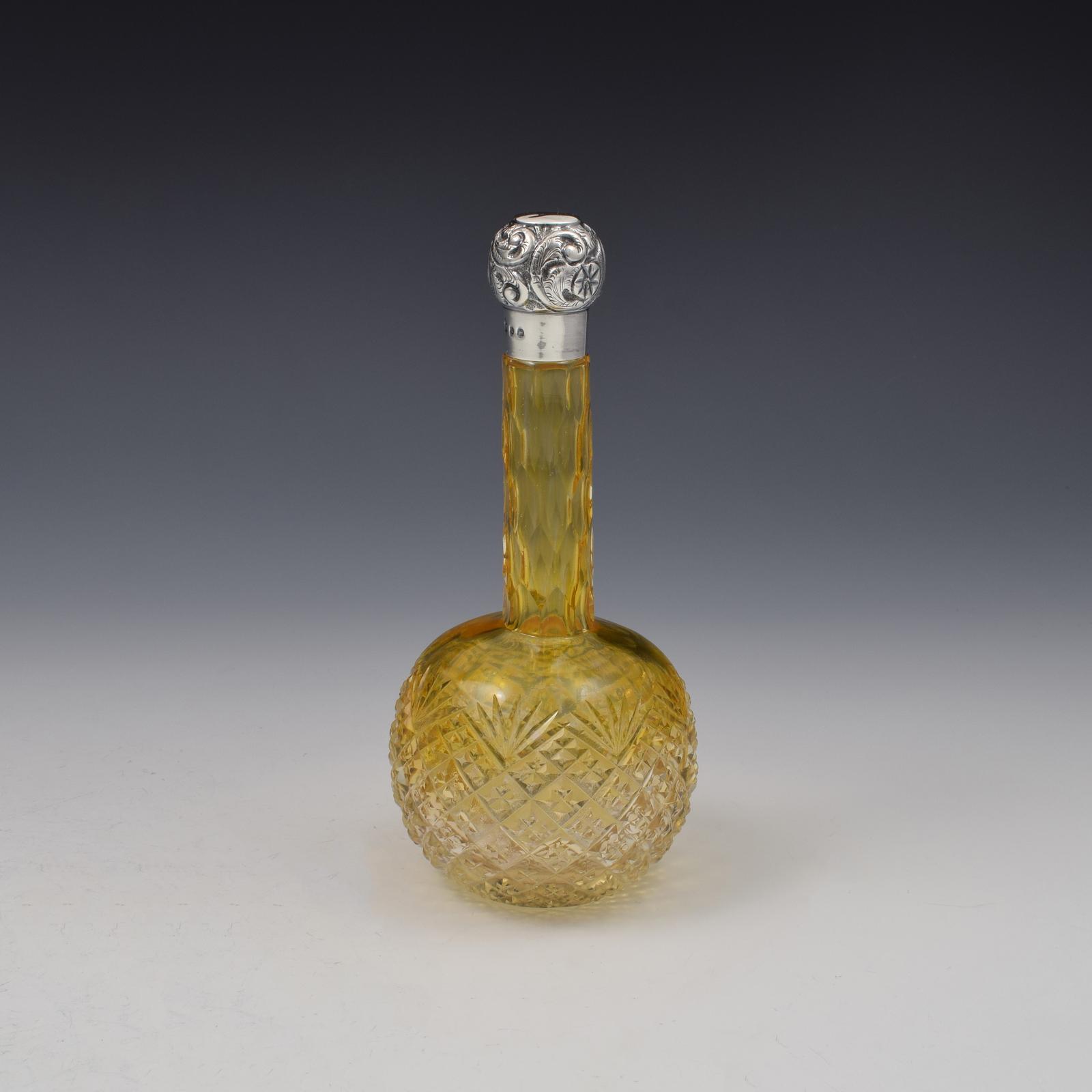 Victorian Silver & Amber Cut Glass Scent / Perfume Bottle