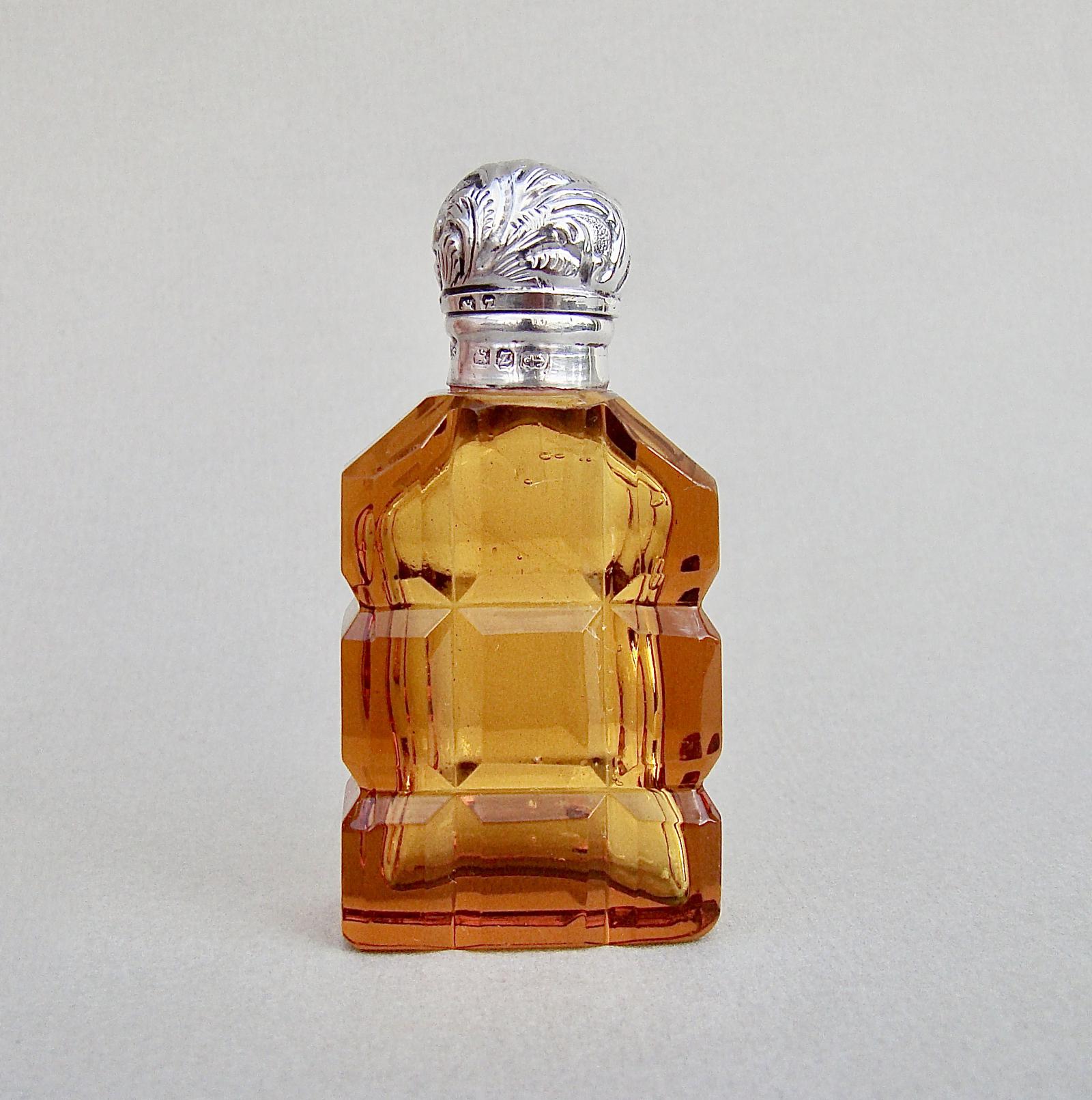 Victorian Silver & Amber Glass Scent Bottle by The Mousley Brothers, Birmingham 1899