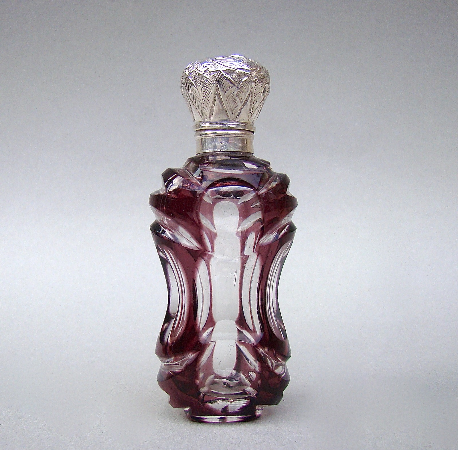 Victorian Silver & Amethyst Overlay Bohemian Glass Scent Bottle c.1890