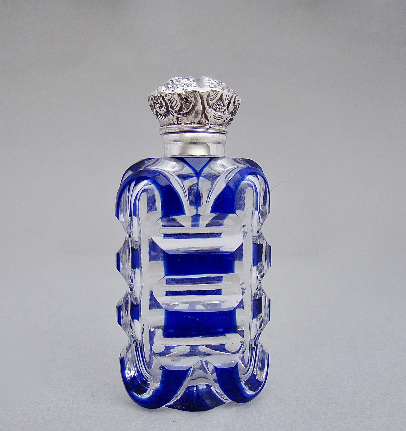 Victorian silver and Bohemian overlay Bristol blue glass scent bottle c.1890