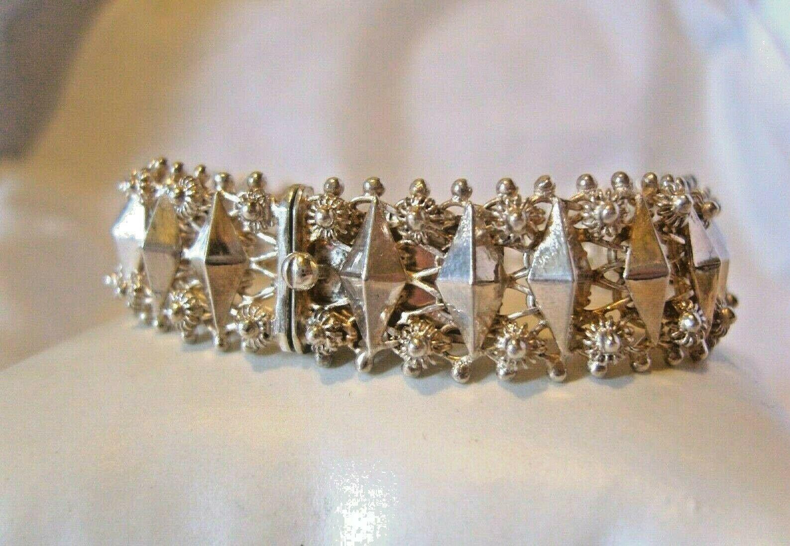 Victorian Silver Bracelet 1890s Antique French Fancy Daisy Link 7 1/2" Length
