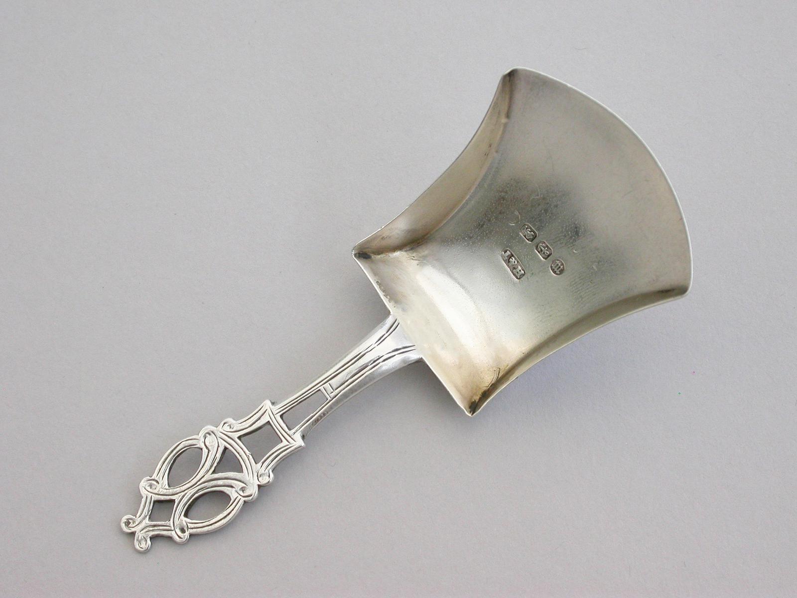 Victorian Silver Caddy Spoon With Gothic Style Pierced Handle by Hilliard & Thomason, Birmingham 1886