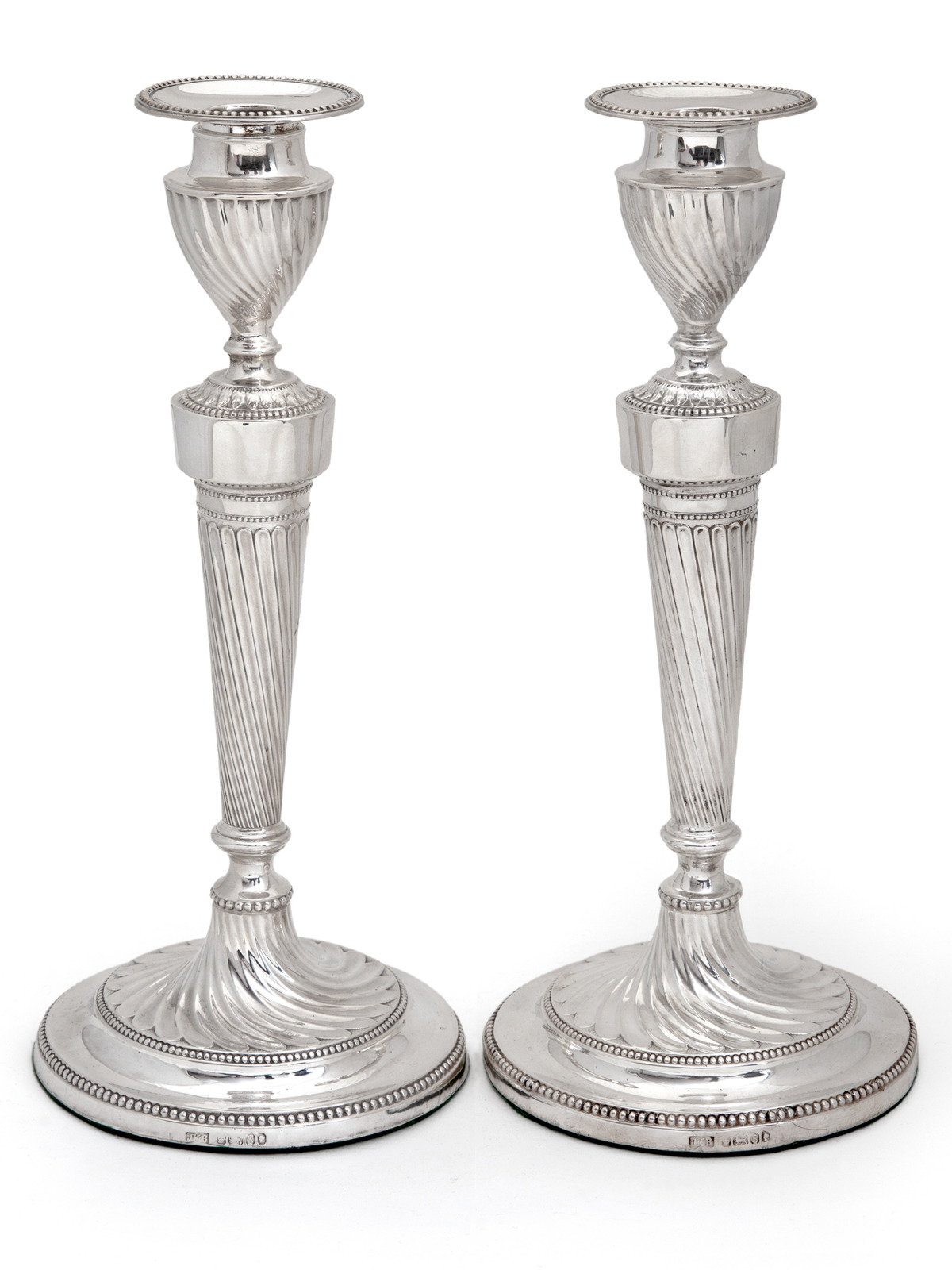 Victorian Silver Candlesticks with a Fluted Spiral Form Stem & Base