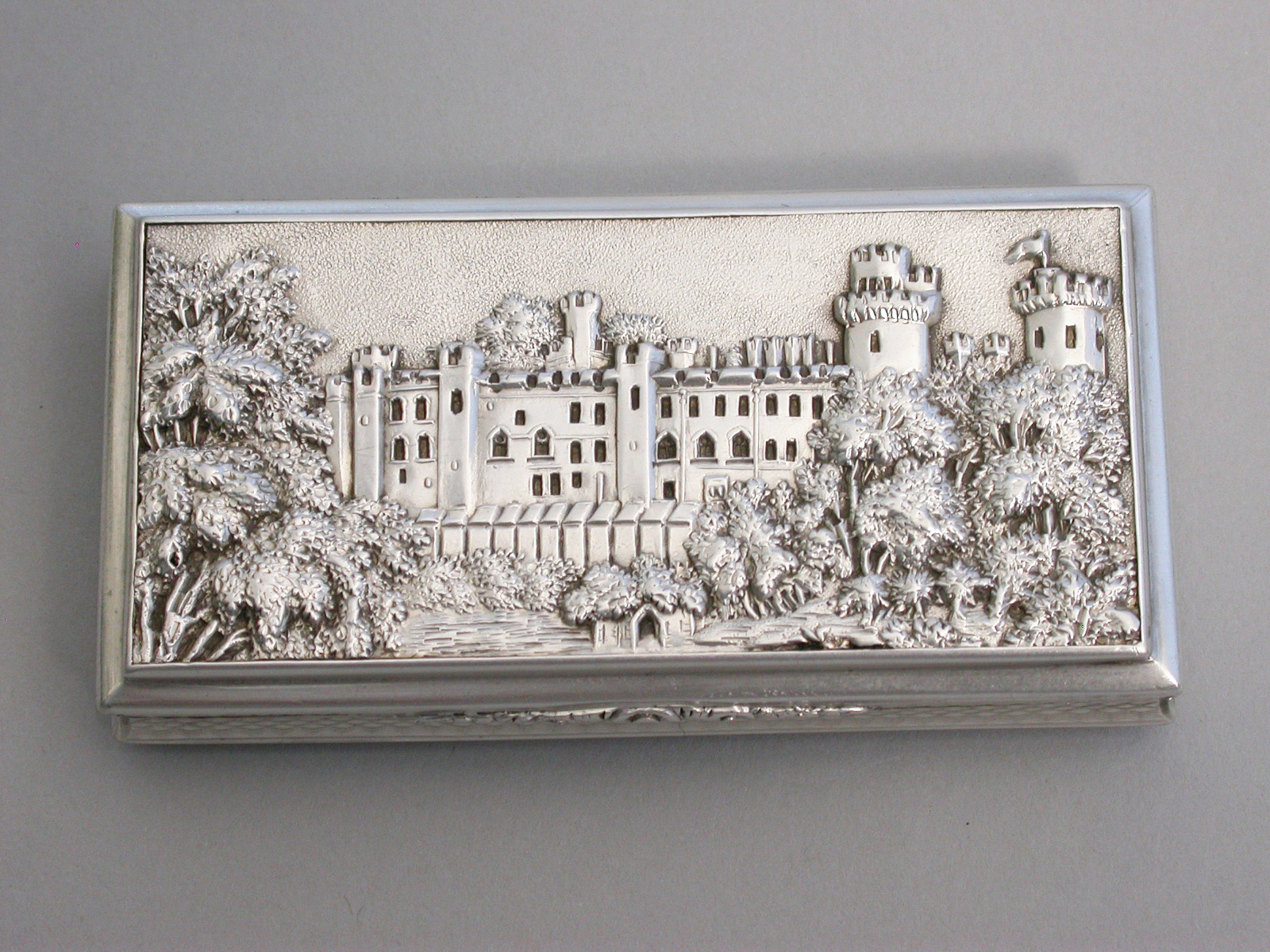 Victorian Silver Castle-Top Snuff Box - Warwick Castle, by Nathaniel Mills, Birmingham, 1838