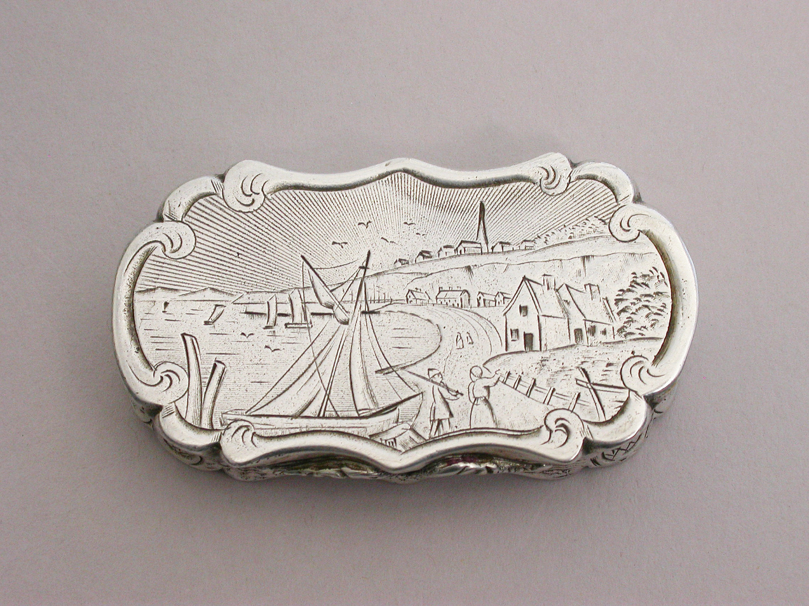 Victorian Silver Castle-Top Vinaigrette 'Folkestone Harbour' by Nathaniel Mills, Birmingham, 1846