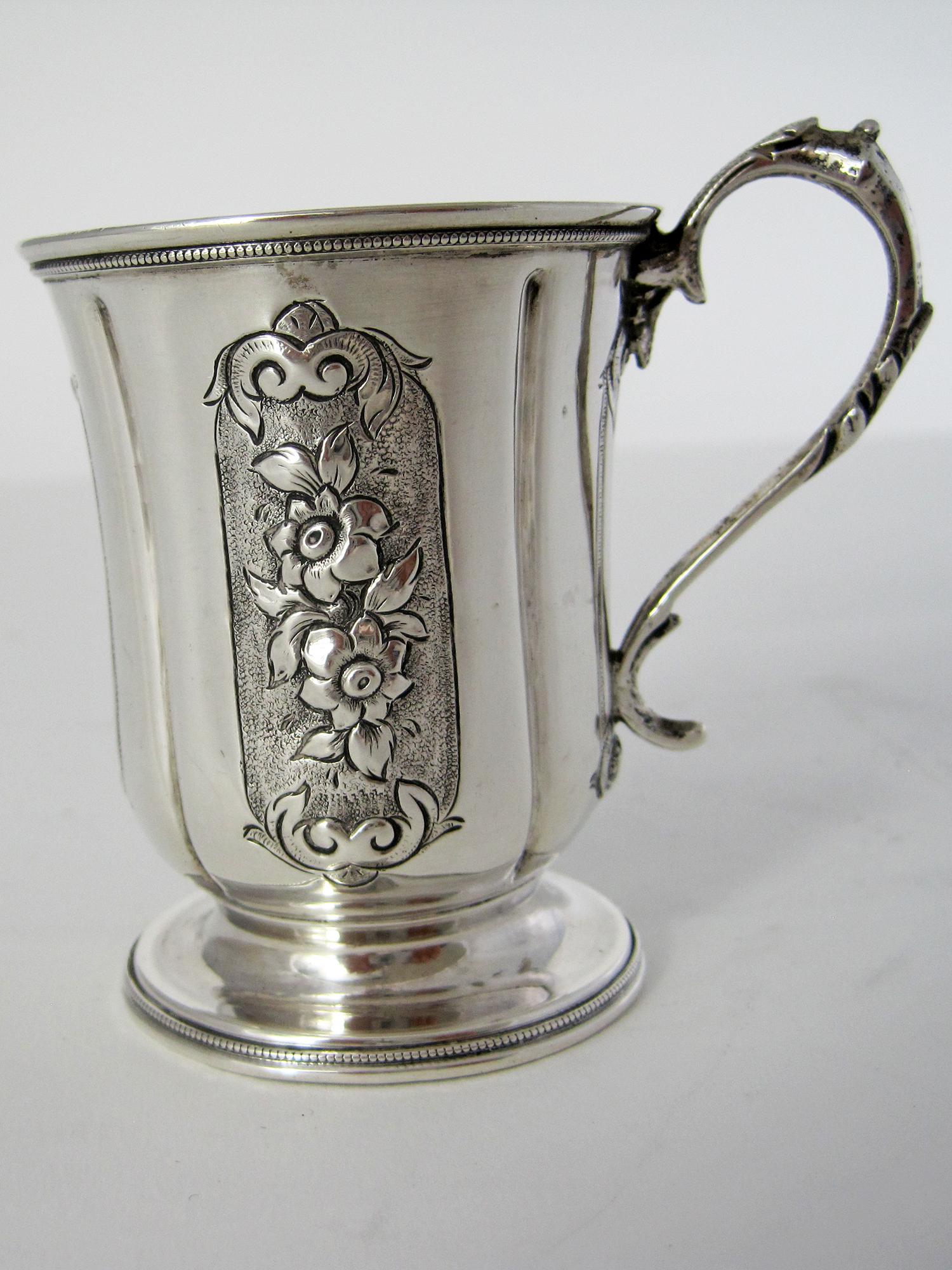 Victorian Silver Childs Christening Mug with a Cast Floral Handle (1 of 5)