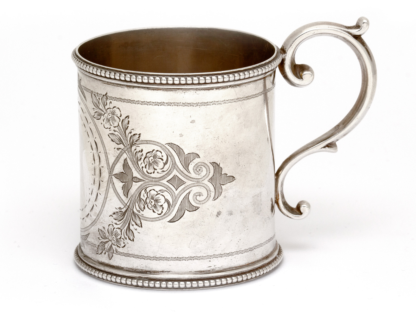 Victorian Silver Christening Mug Engraved with Floral Scenes
