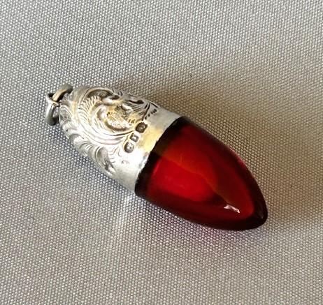 Victorian Silver & Cranberry 'Bullet' Scent Bottle (1 of 5)