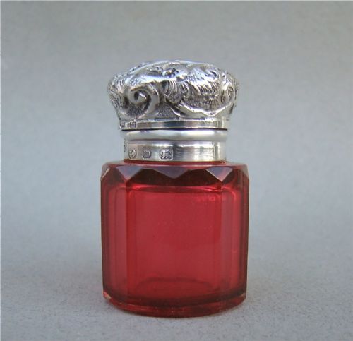 Victorian Silver & Cranberry Glass Scent Bottle by the Mousley Brothers, BIRMINGHAM 1896
