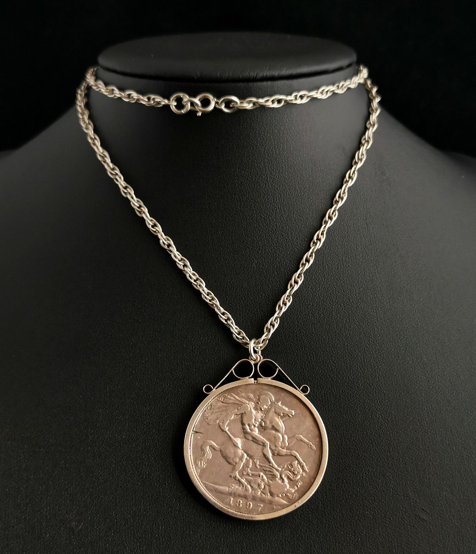 Victorian Silver Crown Pendant, Coin Necklace