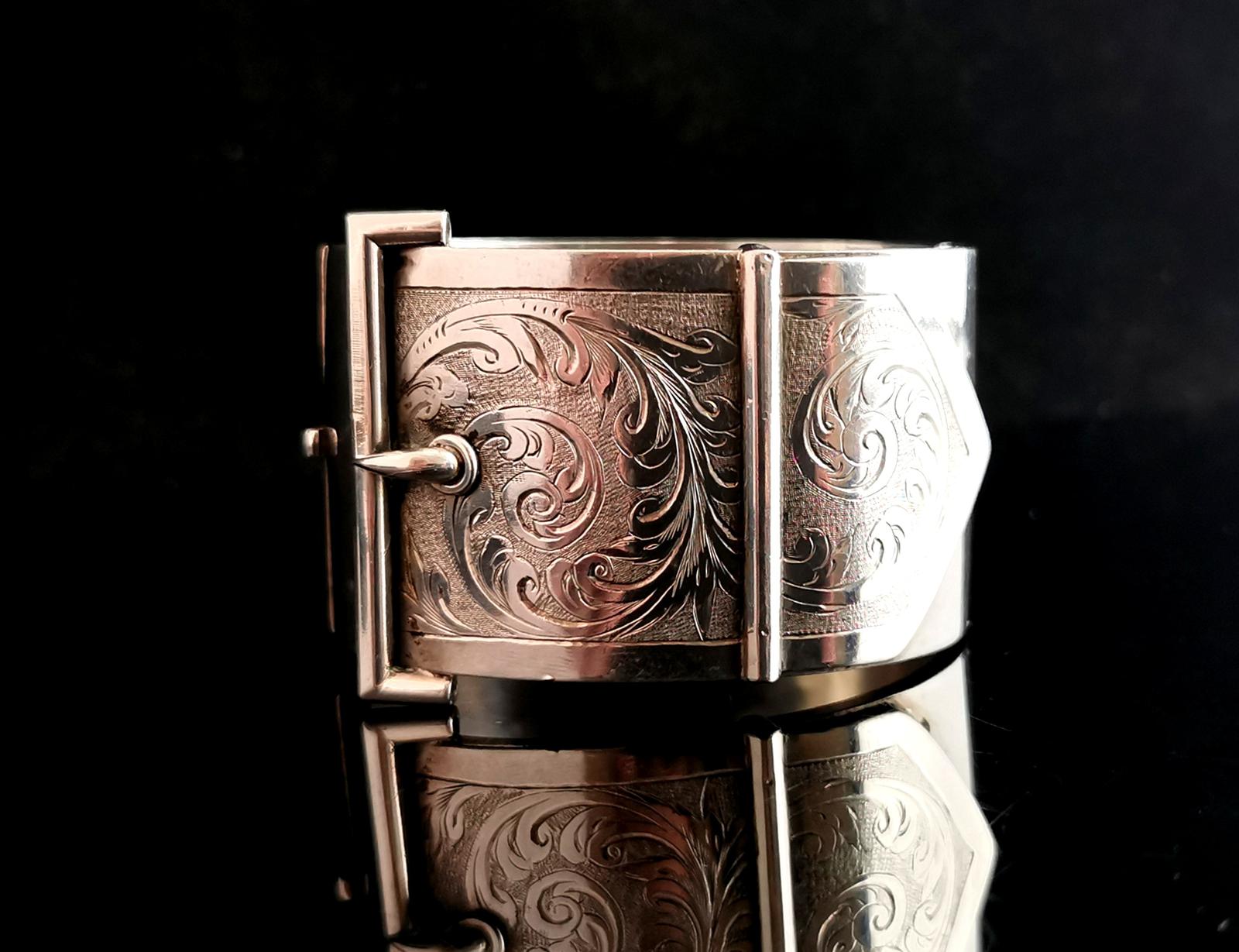 Victorian Silver Cuff Bangle, Wide, Buckle