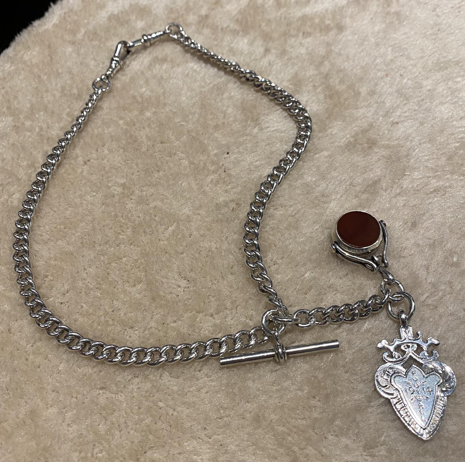 Victorian Silver Double Albert, with t-bar, fob and swivel fob.