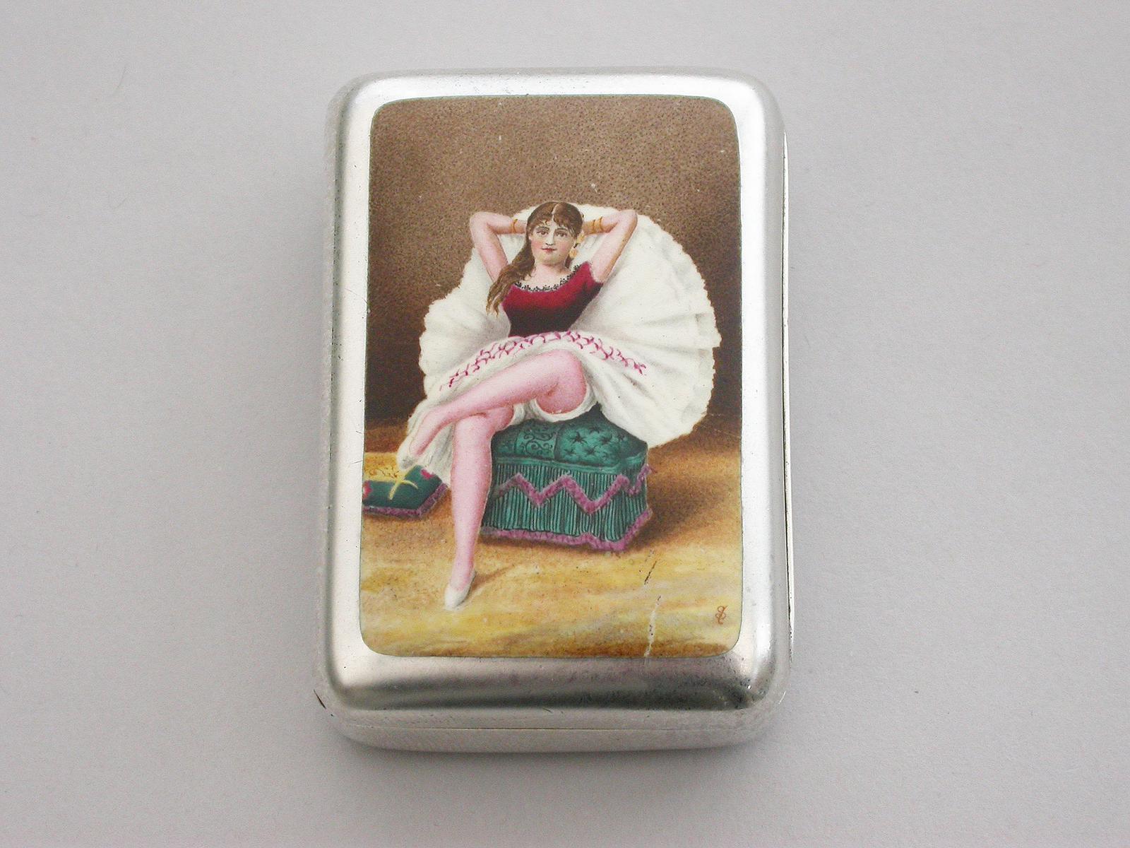 Victorian Silver & Enamel Vesta Case 'Risque Dancing Girl'