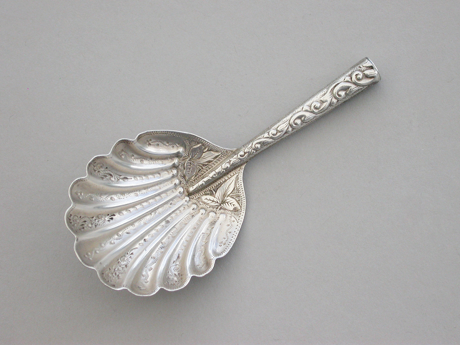 Victorian Silver Fluted Bowl Caddy Spoon by William Devenport, Birmingham, 1895