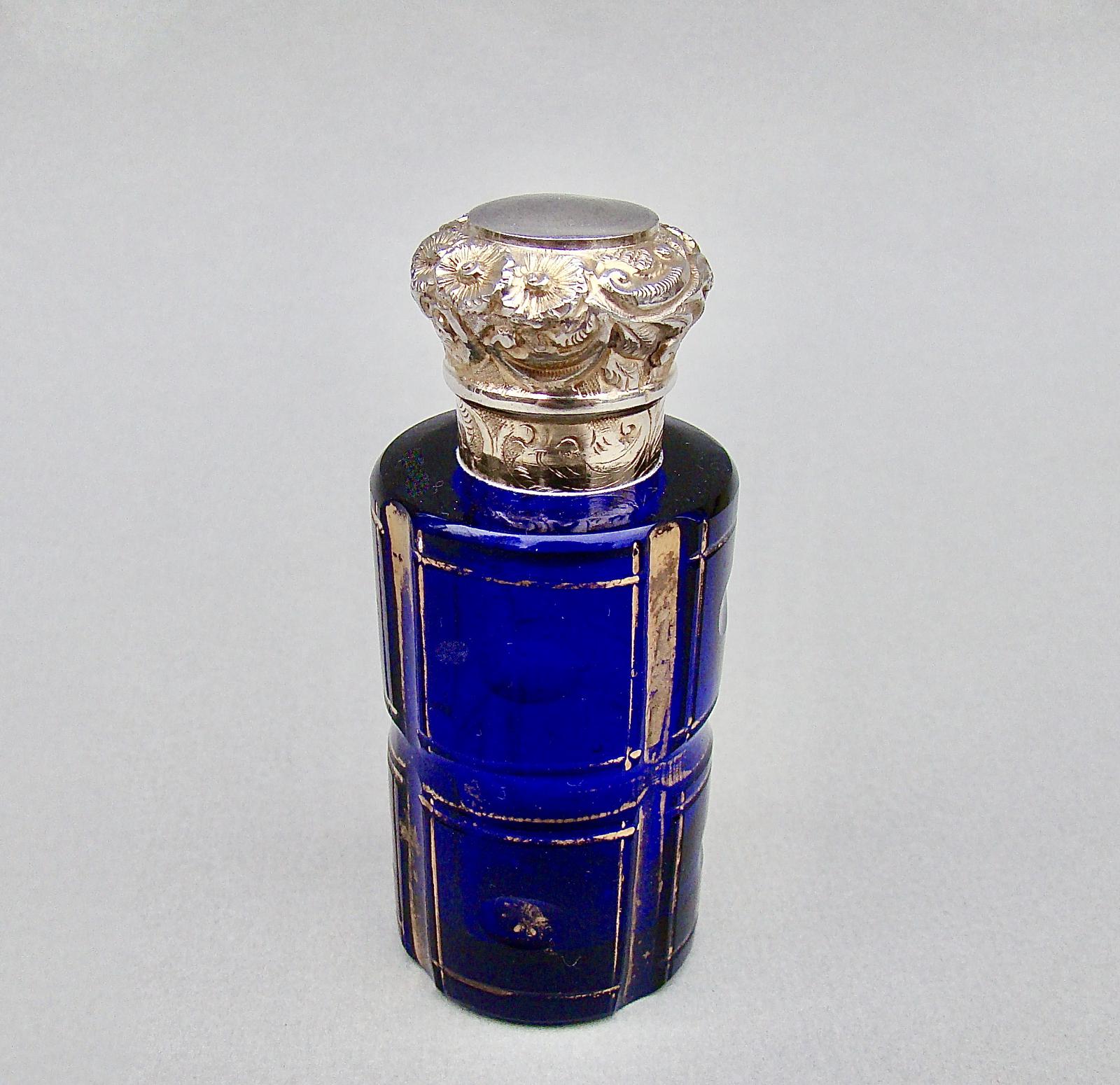 Victorian Silver Gilt and Bristol Blue Glass Scent Bottle, circa 1880