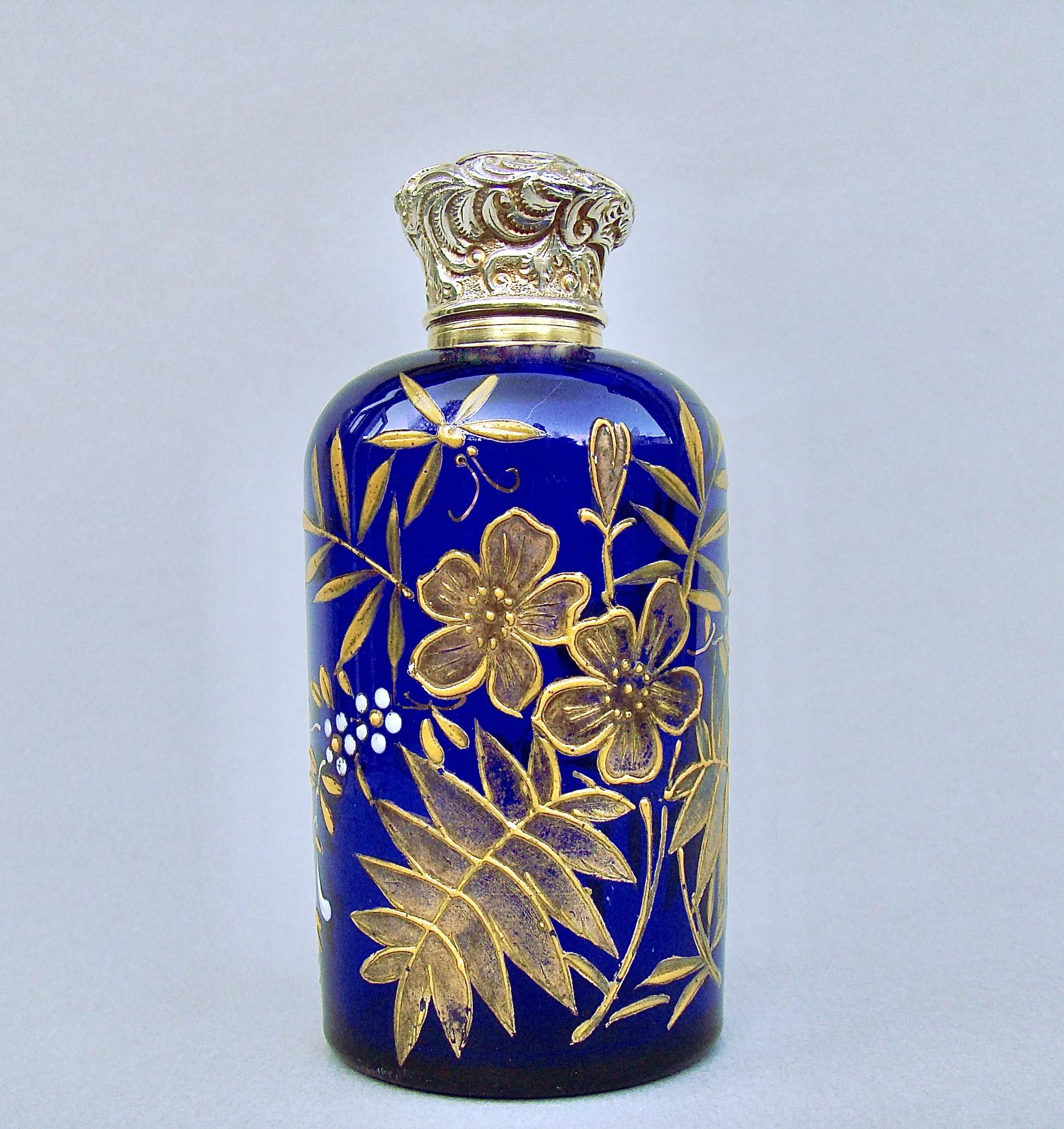 Victorian silver gilt & enamelled glass scent bottle c.1890