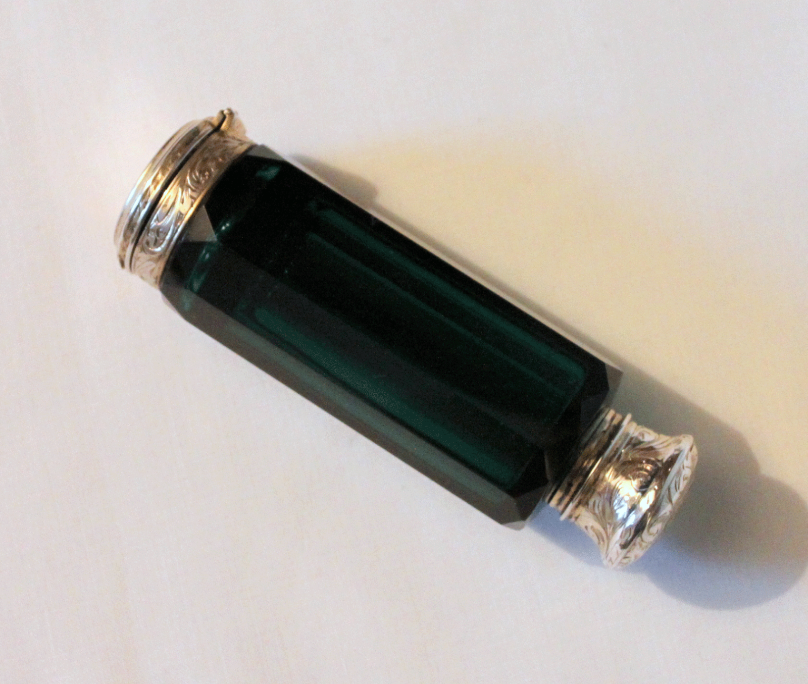 Victorian Silver Gilt Green Glass Scent Bottle / Vinaigrette Combined