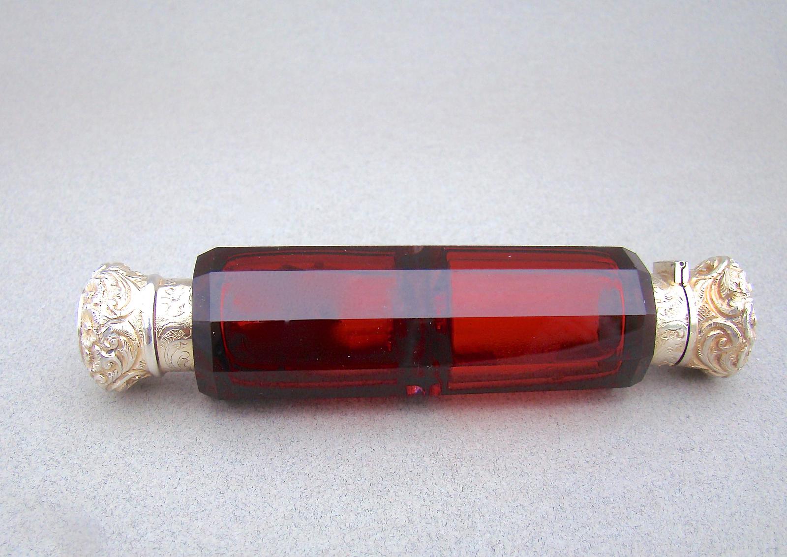 Victorian Silver Gilt Ruby Glass Double-ended Scent Bottle
