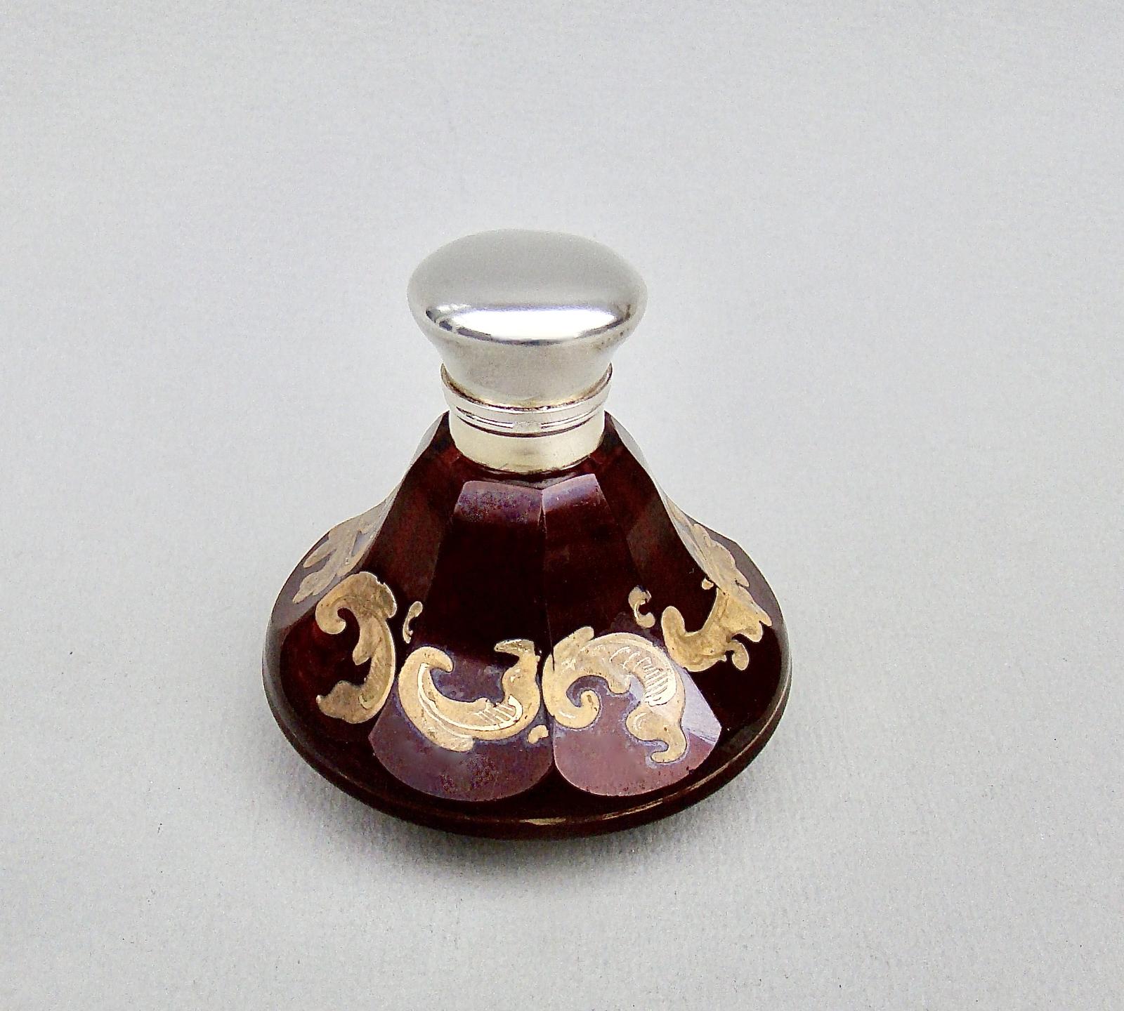 Victorian Silver Gilt Ruby Glass Enamelled Scent Bottle c.1880