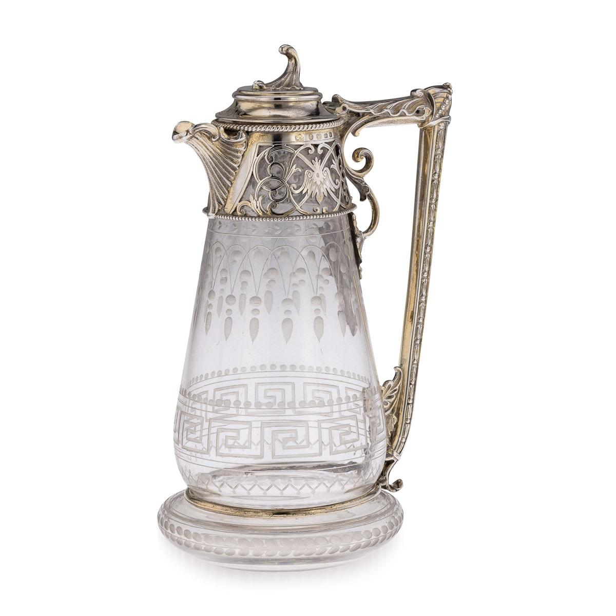 Victorian Silver & Glass Claret Jug, Gough & Silvester c.1865