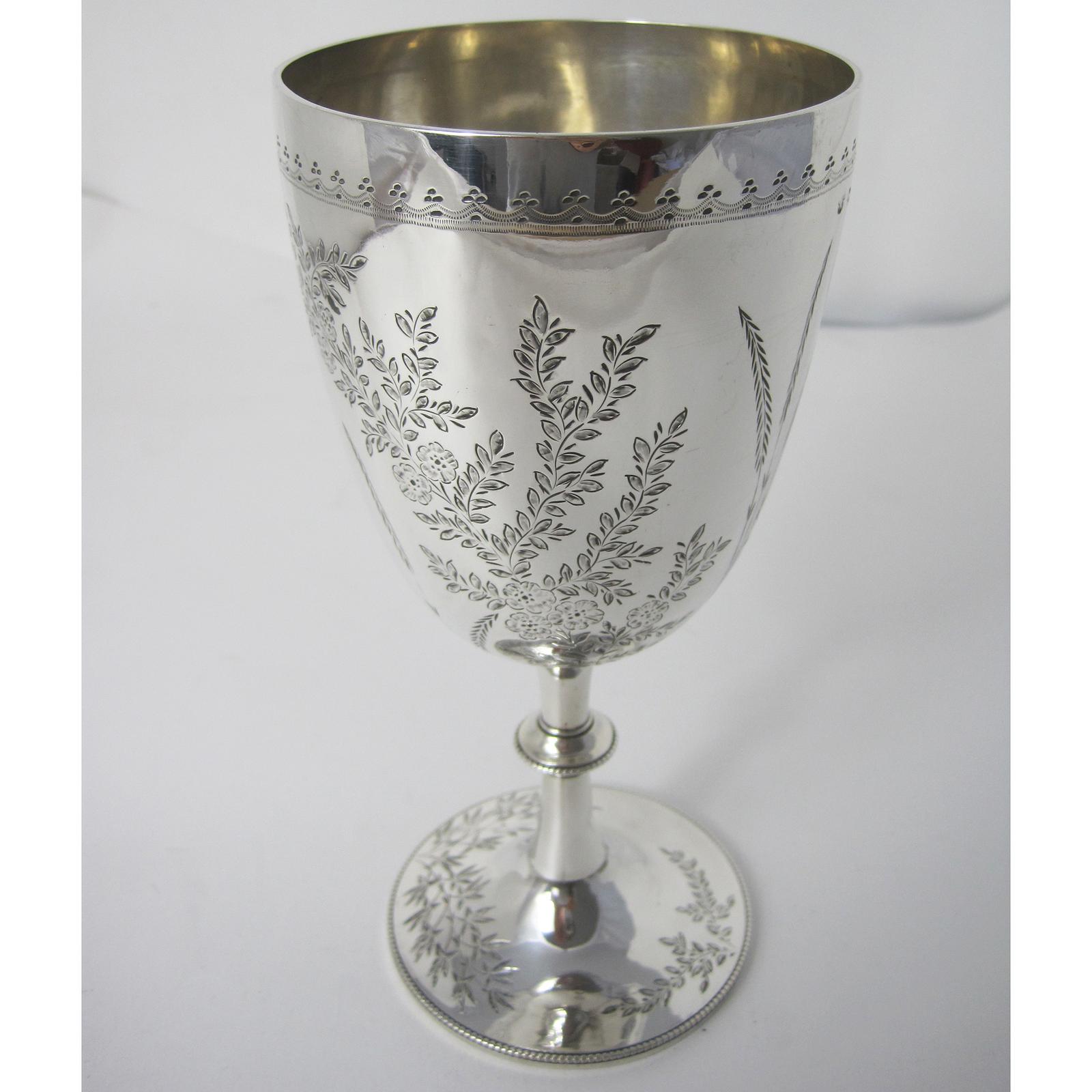 Victorian Silver Goblet or Trophy Cup with Beautiful Fern and Floral Engraving