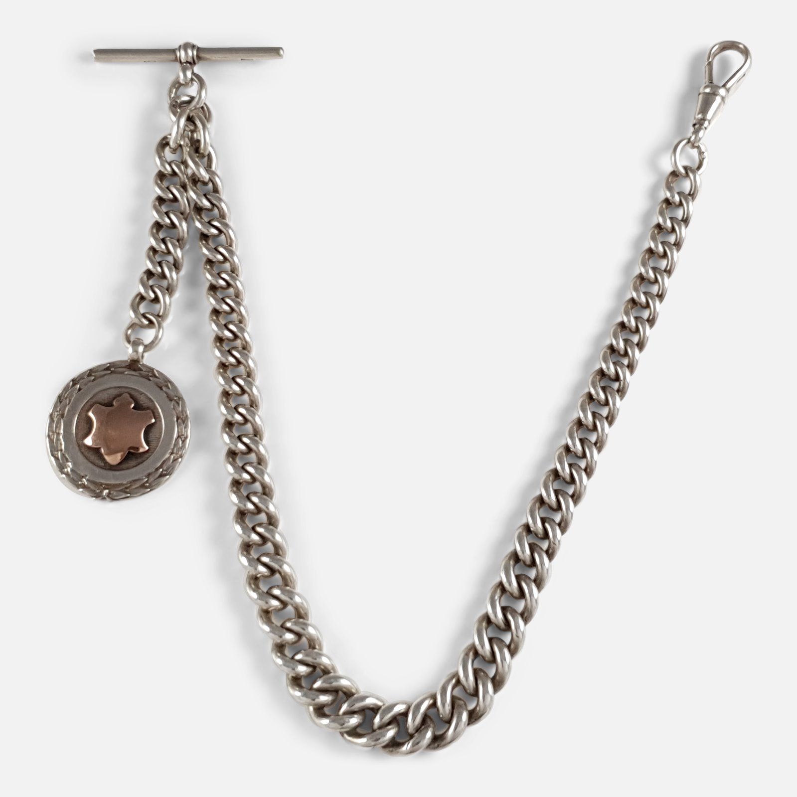 Victorian Silver Graduating Albert Watch Chain 1890 & Fob 1921 - 81.4g