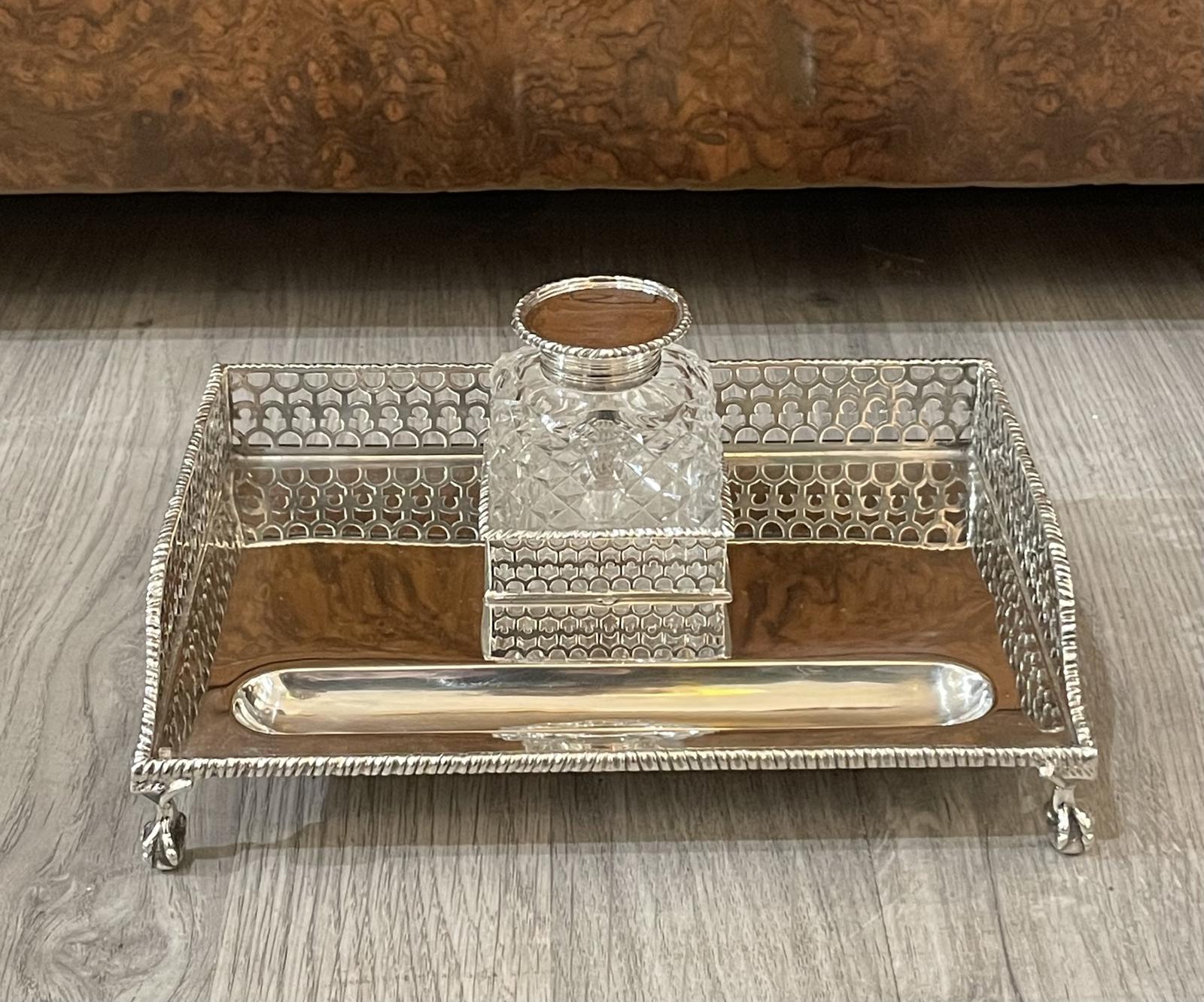 Victorian Silver Inkwell & Stand by George Fox 1887