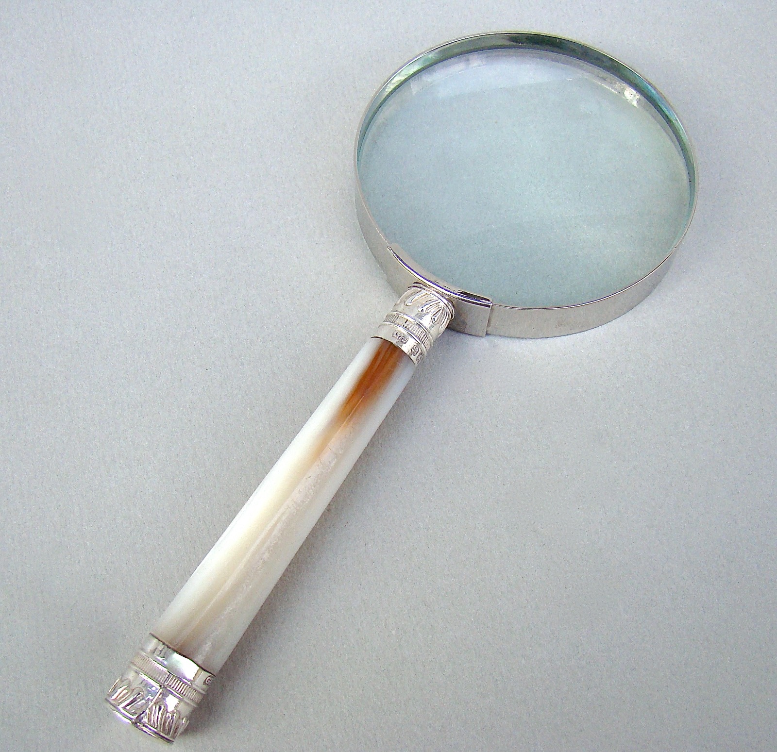Victorian Silver & Mother of Pearl Desk Magnifying Glass by Harrrisons Brothers Howson, Sheffield 1897