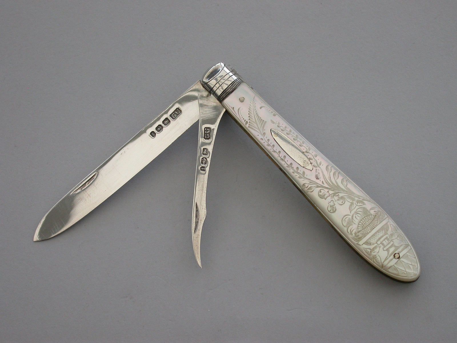 Victorian Silver & Mother of Pearl Folding Fruit Knife & Seed Pip Pick by George Unite, Birmingham, 1893