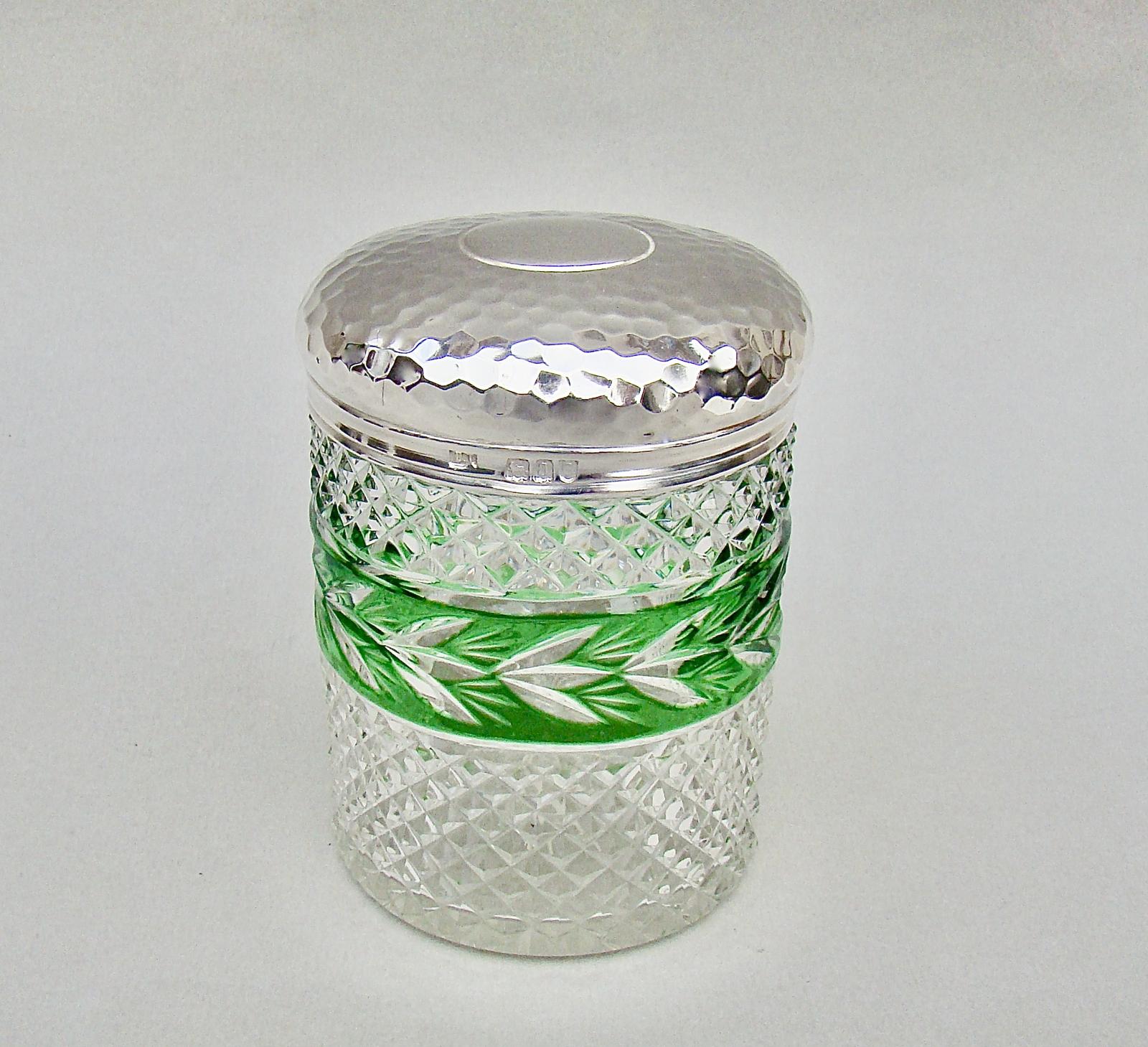 Victorian Silver Mounted Bohemian Glass Dressing Table Jar by Thomas Ingleton, London 1896