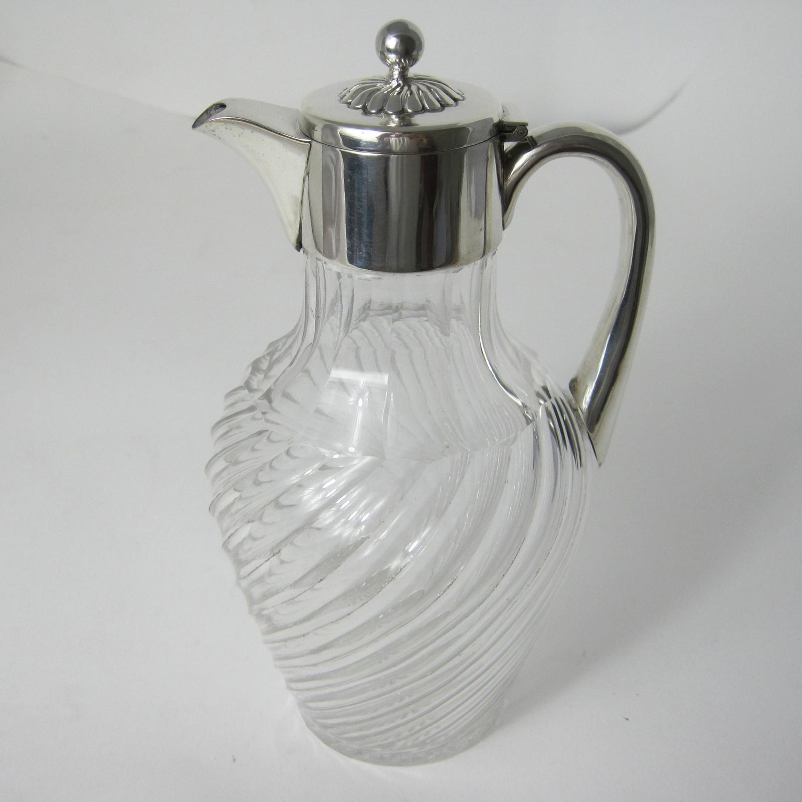 Victorian Silver Mounted Claret Jug with Clear Glass Ovoid Shape Spiral Cut Body (1 of 5)