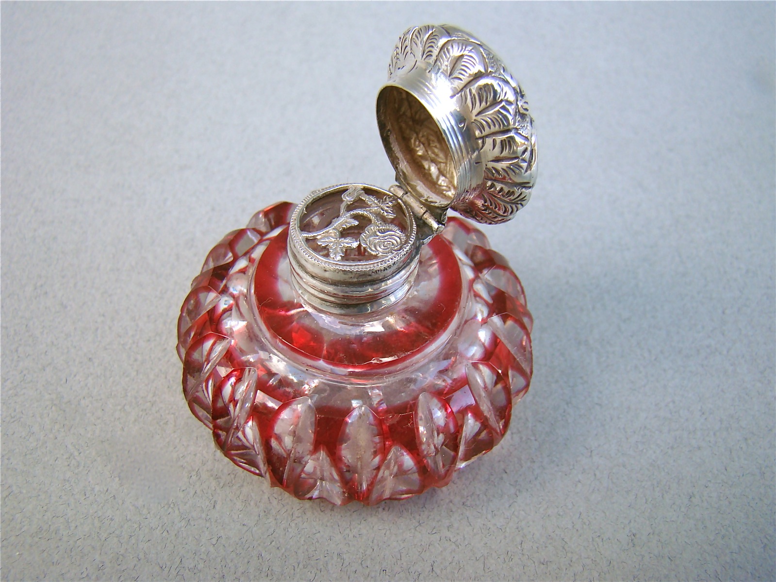 Victorian Silver Mounted Cranberry Overlay Glass Vinaigrette c.1890