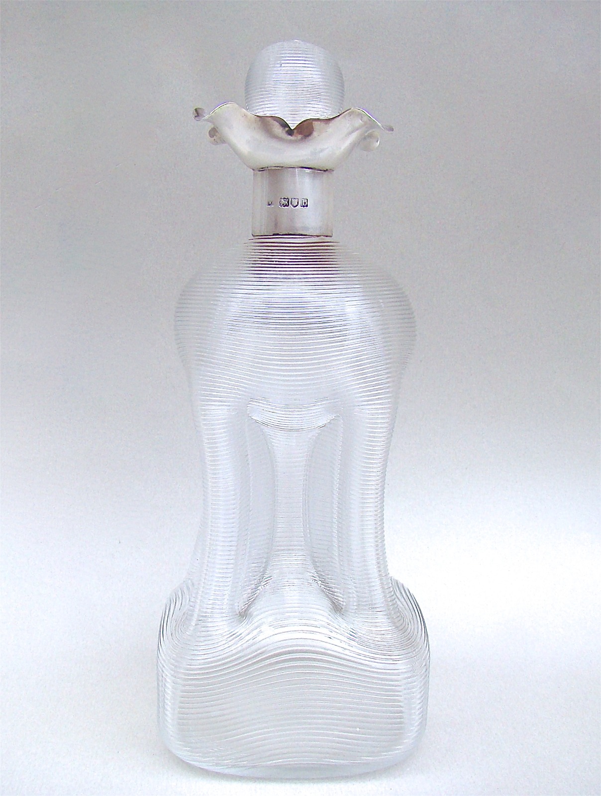 Victorian Silver Mounted Ribbed Glass Small Glug Glug Decanter, London 1897