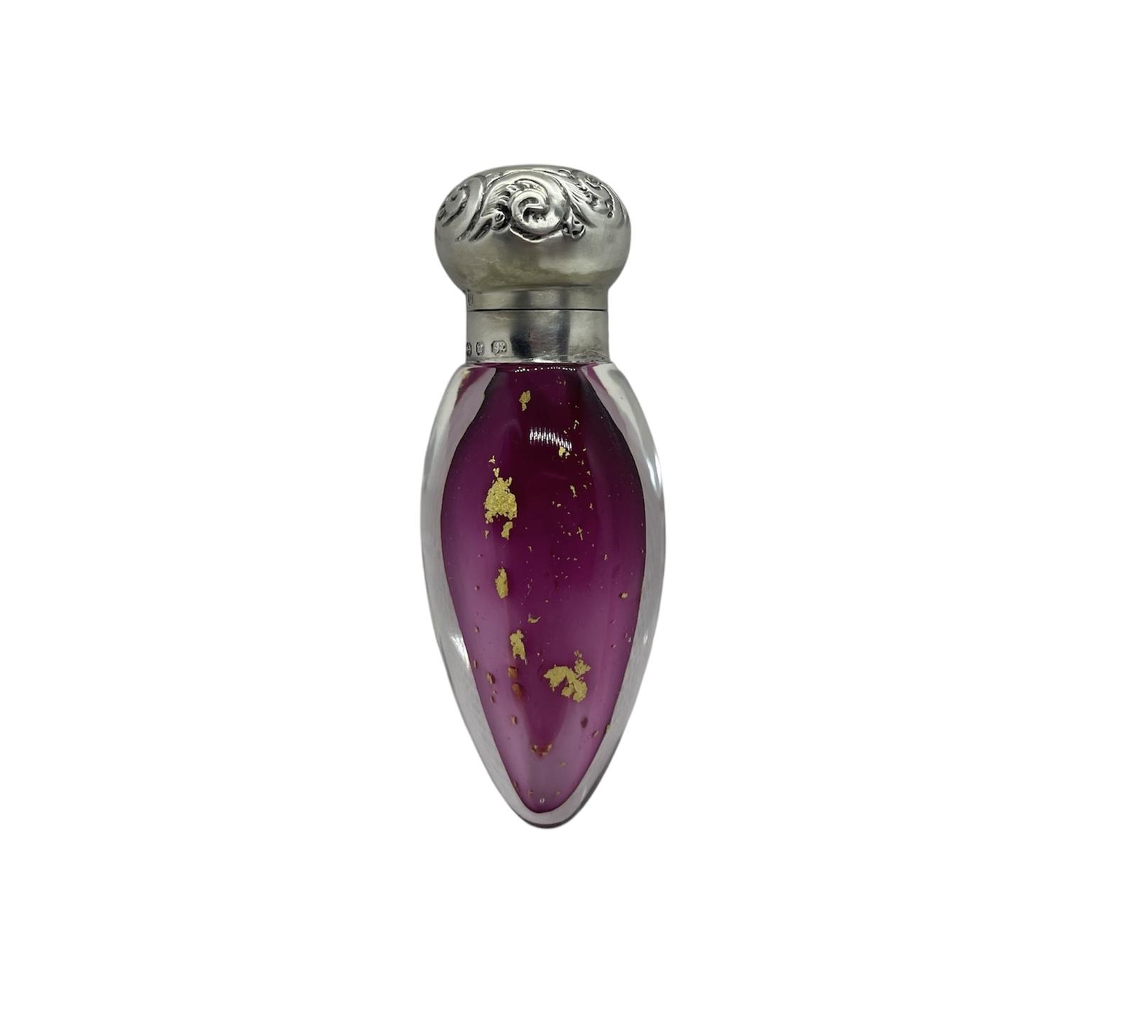 Victorian Silver Perfume Scent Bottle Cranberry Gold Fleck