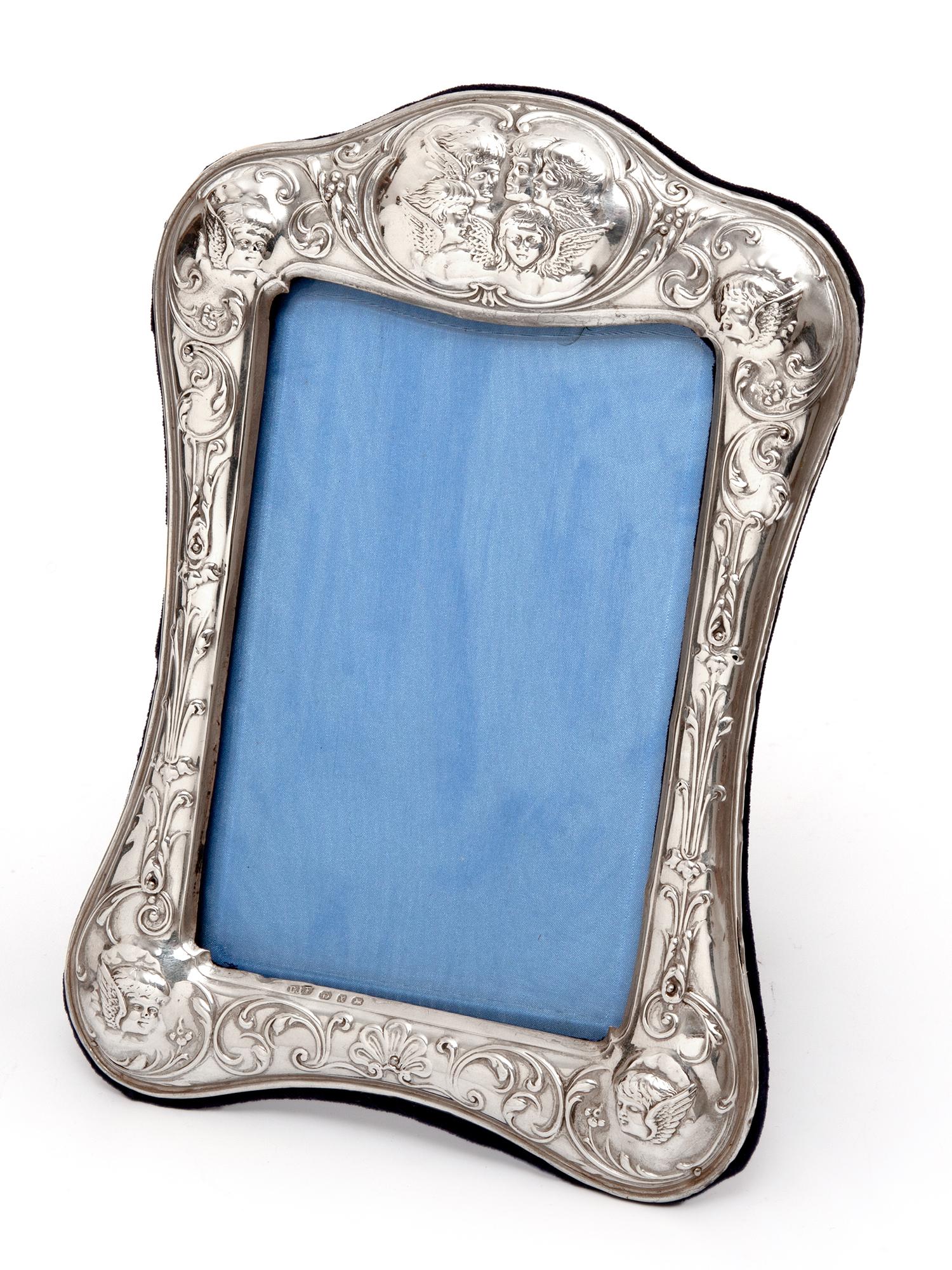 Victorian Silver Photo or Picture Frame Embossed with Reynolds Style Cherubs