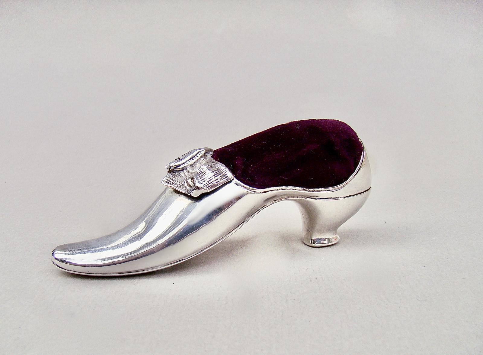 Victorian Silver Pin Cushion in The Form of a Ladies' Shoe by Adie & Lovekin, Birmingham 1891