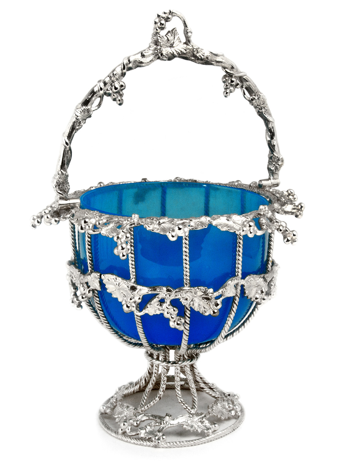 Victorian Silver Plated Basket with Original Blue Glass Liner
