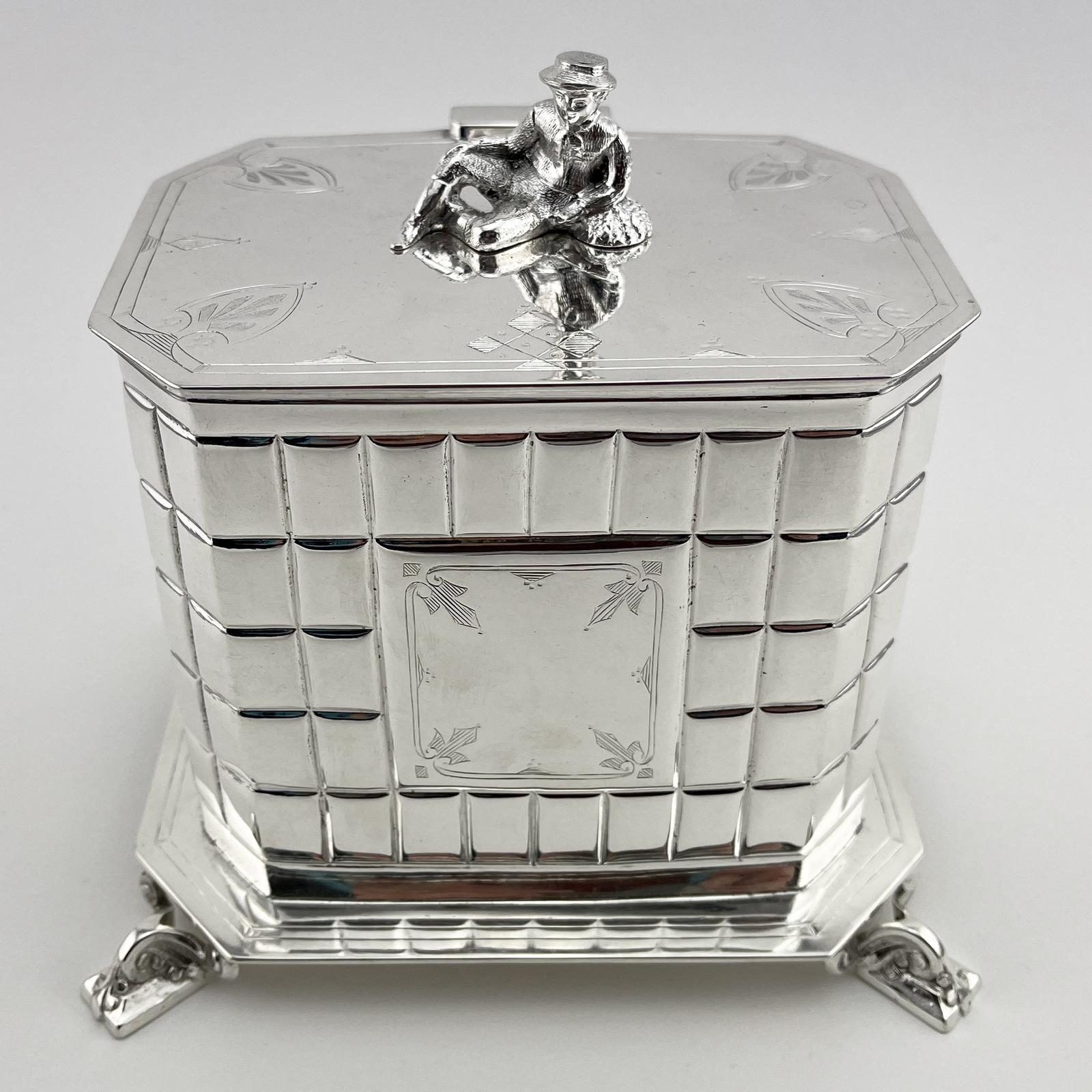 Victorian Silver Plated Biscuit Box with Figural Farmer and Wheatsheaf (1 of 8)