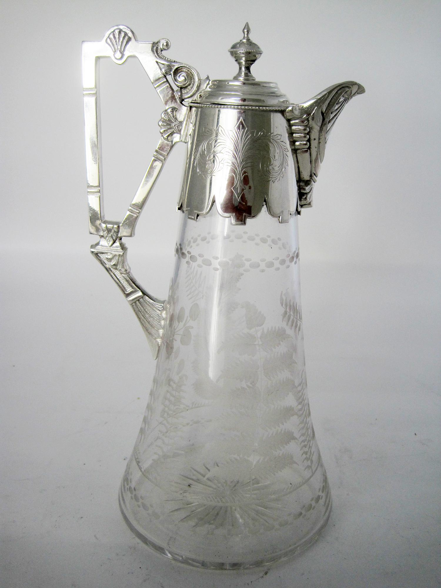 Victorian Silver Plated Claret Jug with Cast Fluted Spout & Unusual Stylised Handle
