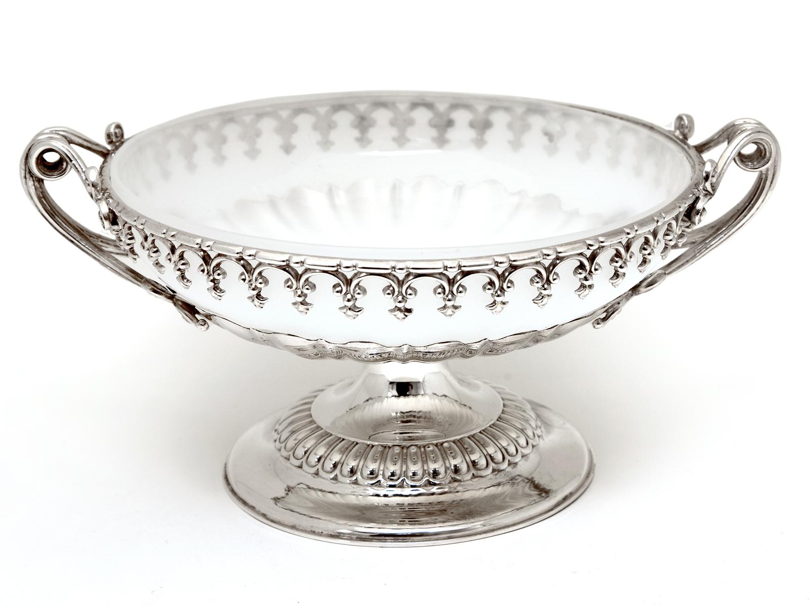 Victorian Silver Plated Comport Bowl with Original Opaque White Glass Liner