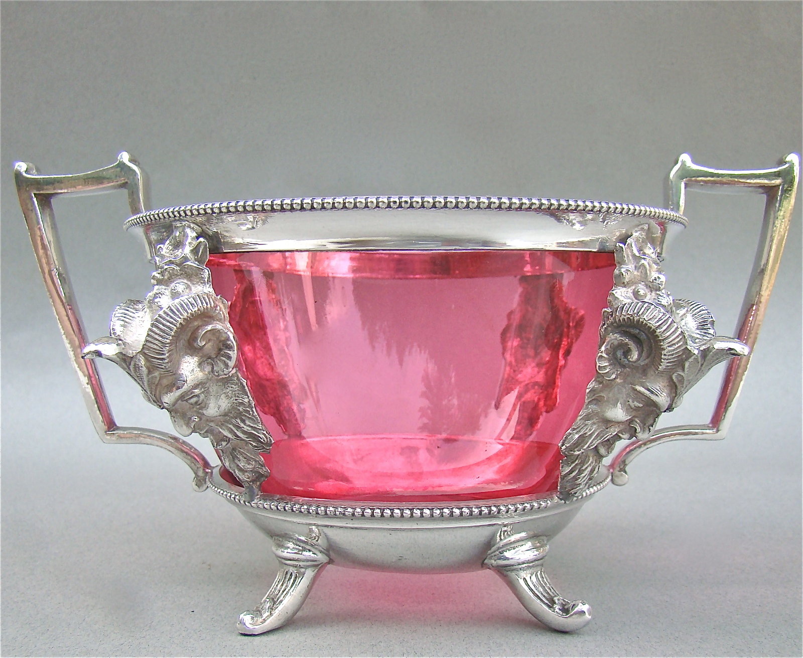 Victorian Silver Plated & Cranberry Glass Sugar Bowl c.1870