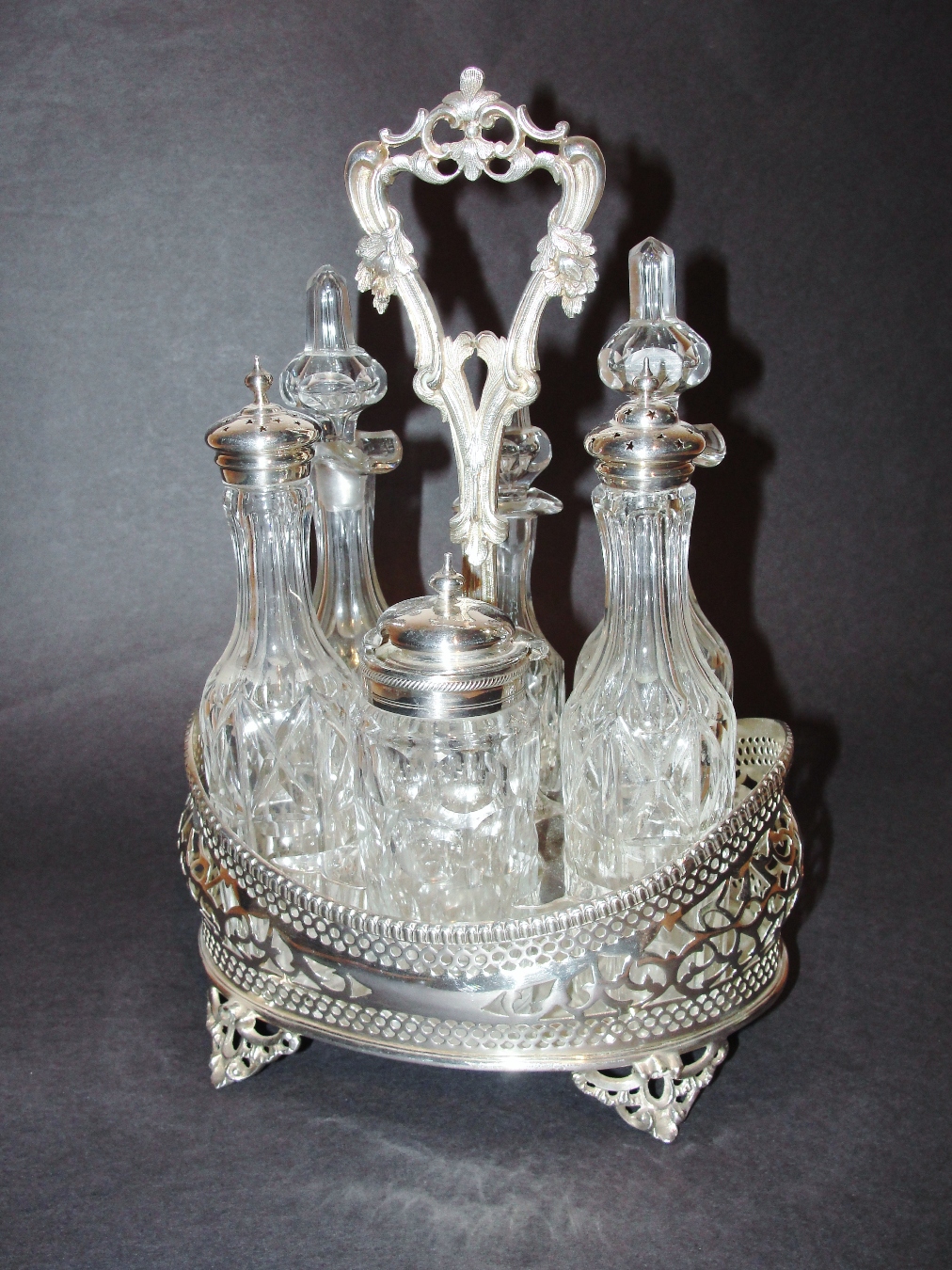 Victorian Silver Plated Cruet Set, Cut Glass Bottles